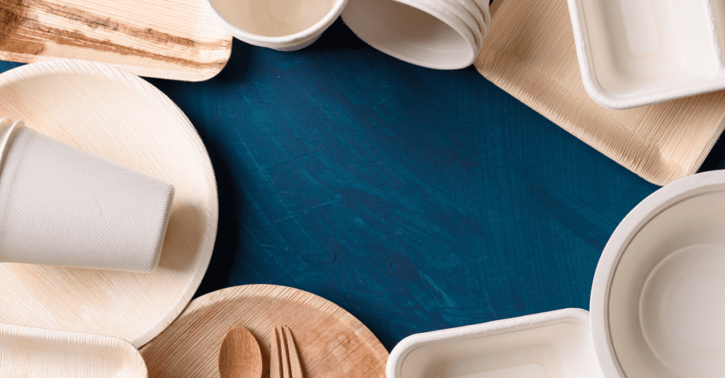 Biologiskt nedbrytbara tallrikar, muggar, och redskap gjorda av material som bambu, sockerrör, och majsstärkelse är ett utbrett valfritt till konventionella engångsalternativ. Dessa material är komposterbara och bryts ner på några månader istället för lång tid. Ett fåtal matställen använder verkligen återanvändbara bestick gjorda av solida material som rostfritt stål eller glas.